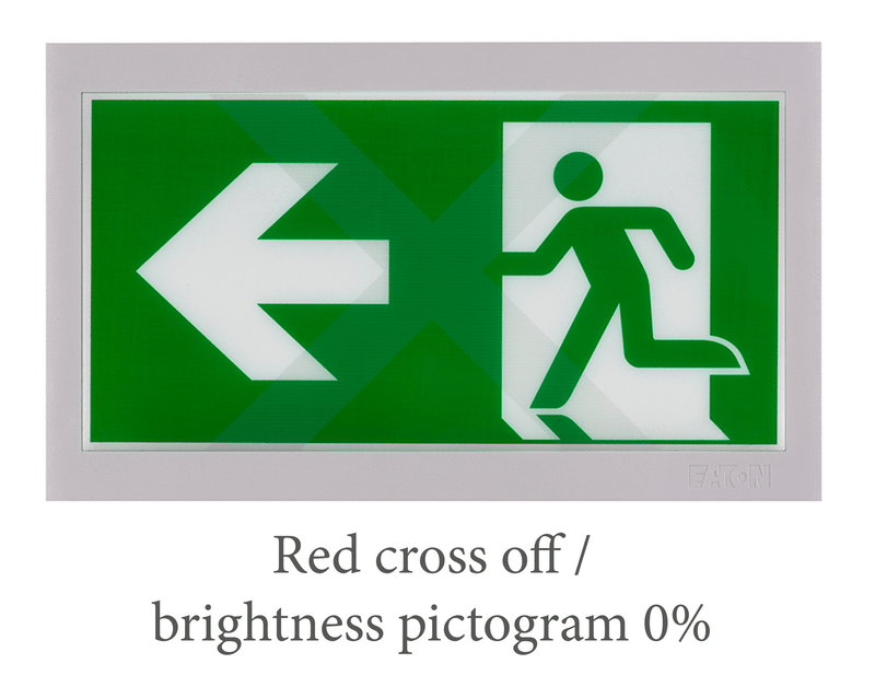 Achieved through the ability to display a red “X” to signify a closed or blocked area the range fully conforms with German and European standards including EN 60598-1, DIN EN 60598-2-22, DIN 4844-1 and DIN EN 1838.